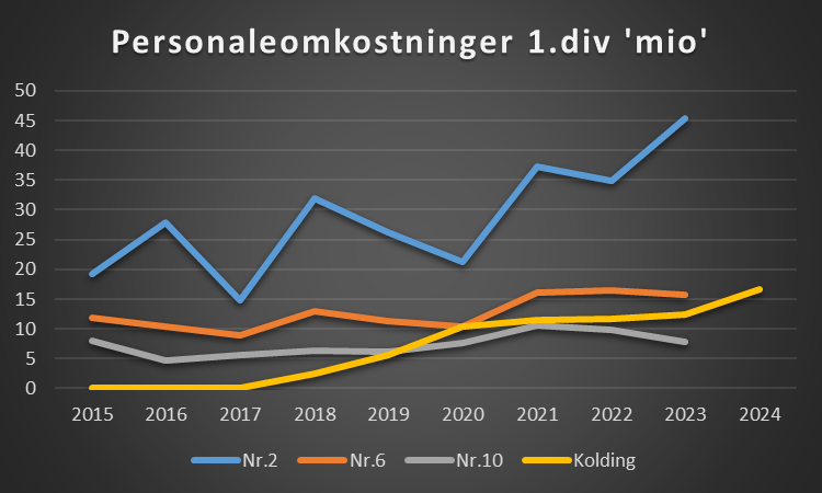 Det økonomiske løft har givet plads til at investere i klubbens sportslige setup, og Kolding IF ligger nu i midten af 1. division, når det kommer til personaleomkostninger. Det er et vigtigt skridt for en klub med ambitioner om at blande sig i toppen, men det er også klart, at hvis målet på sigt er Superliga-deltagelse, vil det kræve en betydelig opgradering af lønbudgettet – i størrelsesordenen en fordobling eller mere.