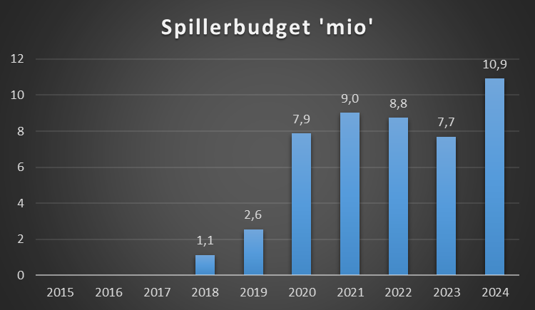Dette er lønsum spillertrup + afskrivninger spillertrup. Lønsummen for spillertrup er ikke oplyst og er derfor et estimat baseret på de oplysninger der er i regnskab i forhold til antal kontraktansatte mm.