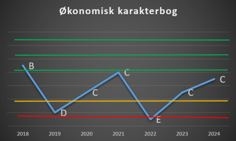 Får en klub karakteren E, betyder det at den har scoret lavest i alle 7 økonomiske parameter, det er særdeles bekymrende. Karakter A er det bedste.