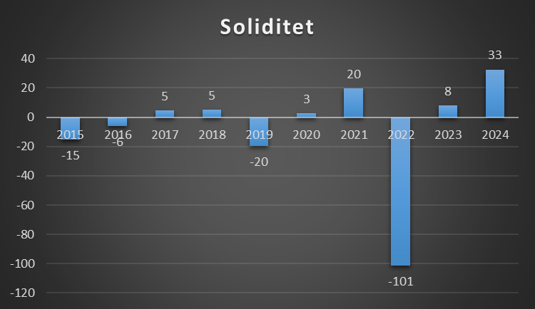 En soliditetsgrad på 0 er også sjældent godt, da klubben har finansieret alle sine aktiver med fremmed kapital. Det gør gør klubben meget skrøbelig overfor økonomisk modgang, da der ikke skal meget til, før de ikke kan betale sine økonomiske forpligtelser.
