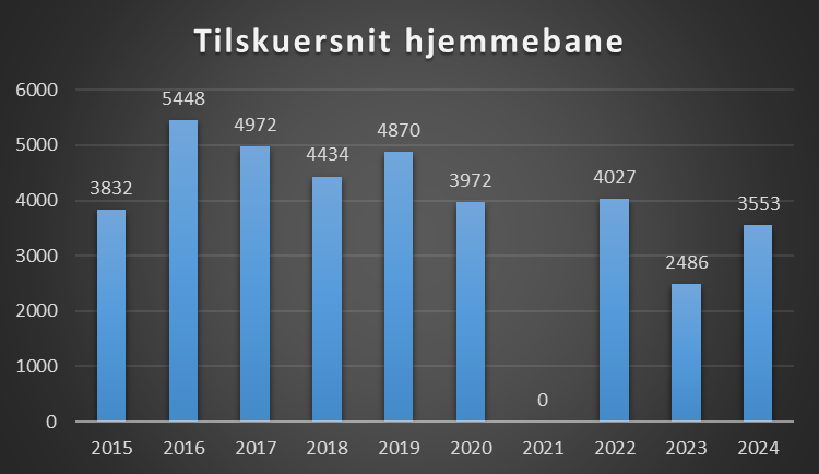 Klubben har ligget højere, men i sæsonen 2024/25 er de tæt på højeste niveau. Men der er potentiale til mere, men det er ikke på matchday indtægter klubberne tjener mest, men hvis klubben havde et snit på 10.000, ville det betyde 19-20 mio i indtjening, gode penge at tage med, men ikke afgørende som det er på sponsorsiden.