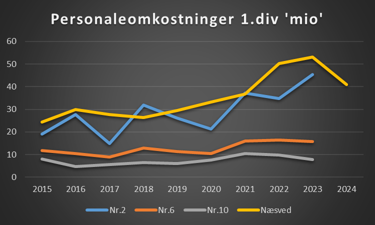 Som det ses, så er klubben en der flirter omkring top 10, og dermed i den grad skal fokusere på nedrykning, men når klubben ligger i 1.div, så har den typisk et budget til toppen af 1.div. Dog har klubben nedgang her og når alle tallene for 2024 kendes, bliver det interessant at se.vej
