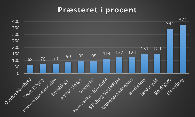 Der er seks klubber som præsterer over evne. Først og fremmest EH Aalborg og Bjerrignbro som får meget for pengene. Men for begge gælder også det betyder placering i den tunge ende med fare for nedrykning!