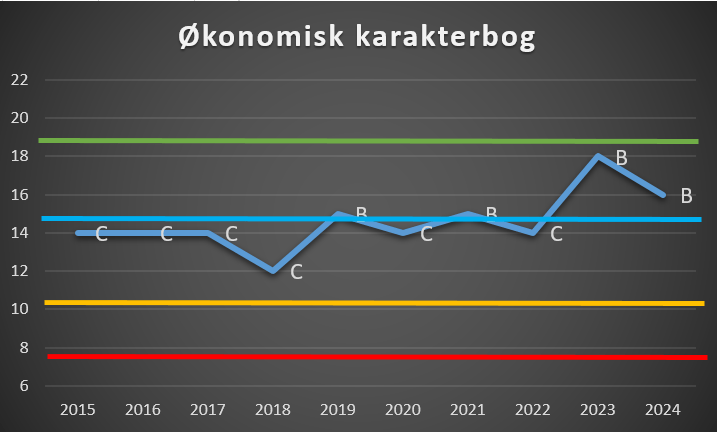 Får en klub karakteren E, betyder det at den har scoret lavest i alle 7 økonomiske parameter, det er særdeles bekymrende. Karakter A er det bedste.