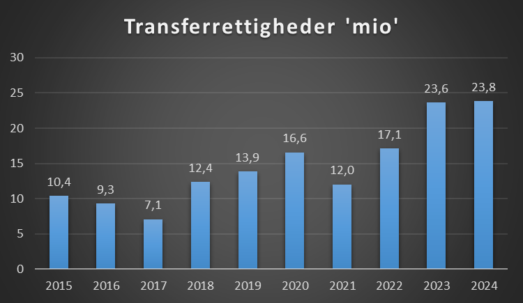 En klub kan opgøre transferrettighederne, eller det som også hedder immaterielle rettigheder forskelligt. Som udgangspunkt skal det forstås som den værdi klubben har lagt ind i truppen.