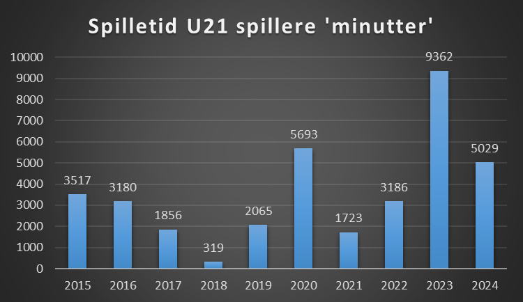 Jo mere spilletid, jo større mulighed for spillersalg. Her er medtaget hvor meget spilletid alle U21 spillere eller yngre har haft, samt hvem der var træner.