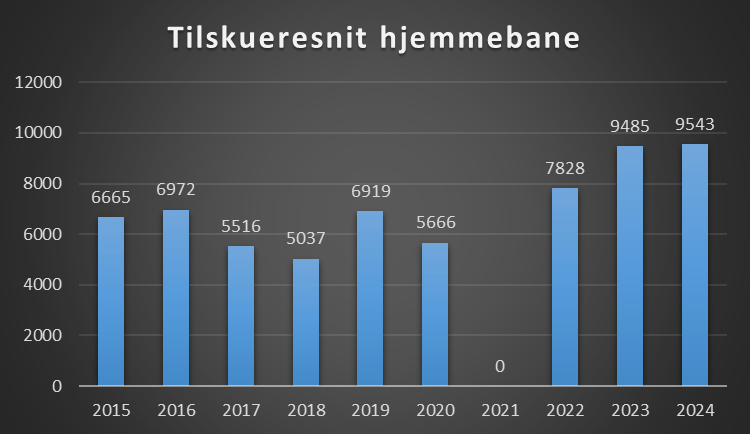 Klubben har fået flot opbakning og ligger lige under de 10.000, og når klubben kommer retur til Superligaen, bliver det interessant at se om det kan lykkedes at nærme sig udsolgt med knap 16.000 tilskuere!