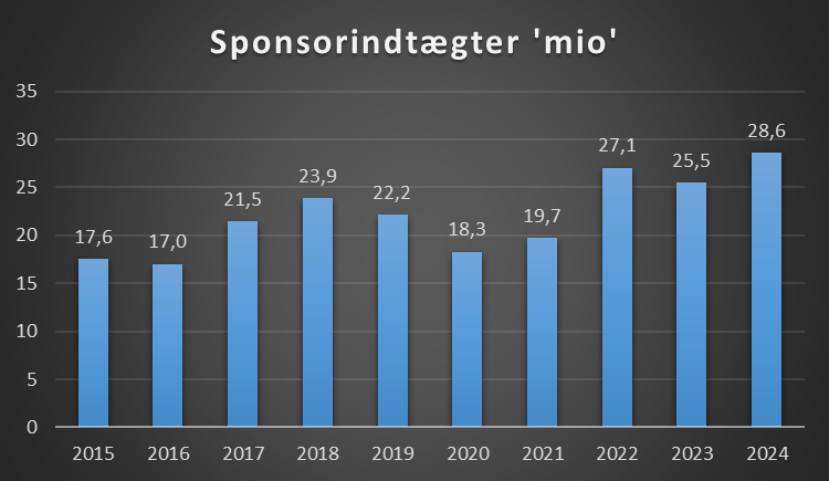Ses der på oversigten i forhold til sponsorindtægterne, har udviklingen været således.
