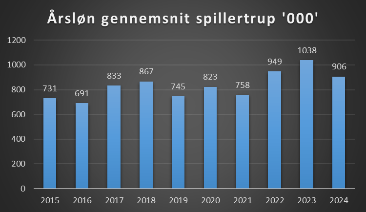 Årsløn gennemsnit spillertrup