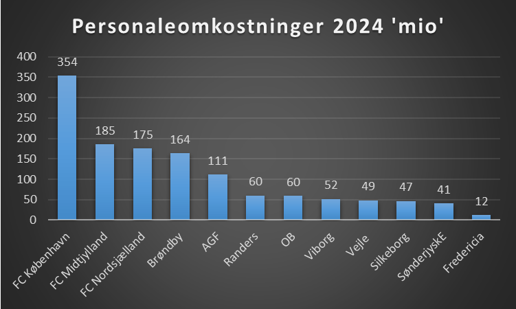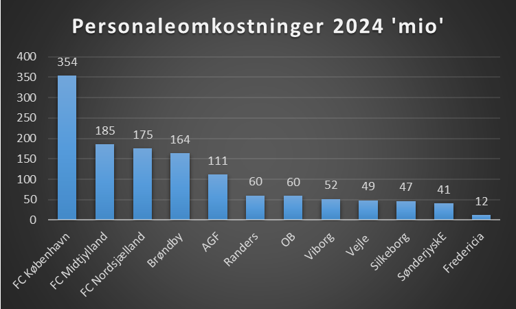 Lad os se på hvad personaleomkostningerne er for de enkelte klubber, og personaleomkostninger dækker over alle ansatte.