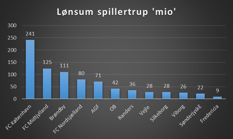 Sættes spillertruppen til at have 25 spillere, vel vidende at der kan blive brugt langt flere spillere, men typisk er de spillere ikke løntunge, så vil dette være et estimat på hvad lønsummen for spillertruppen vil være for de 12 klubber i Superligaen 2025/26.