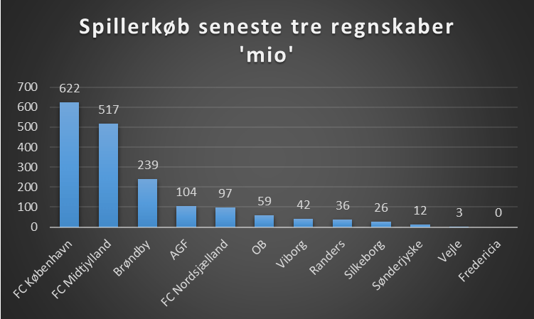 I alt har de 12 klubber i den kommende sæson købt spillere for 1,6 mia, hvor tre klubber står for omkring de 75% af den sum, nemlig FC København, FC Midtjylland og Brøndby.