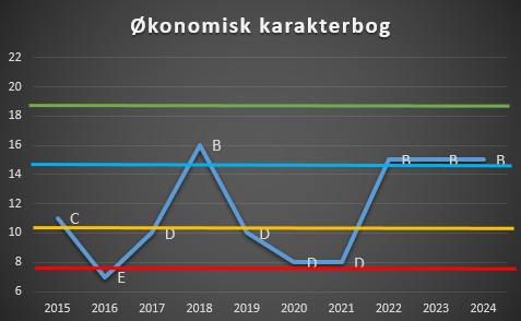 Får en klub karakteren E, betyder det at den har scoret lavest i alle 7 økonomiske parameter, det er særdeles bekymrende. Karakter A er det bedste.