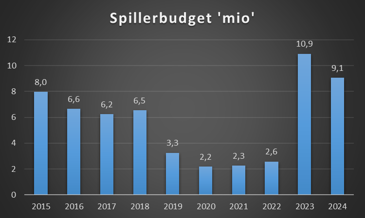 Dette er lønsum spillertrup + afskrivninger spillertrup. Lønsummen for spillertrup er ikke oplyst og er derfor et estimat baseret på de oplysninger der er i regnskab i forhold til antal kontraktansatte mm.