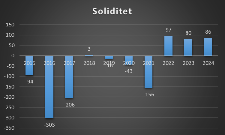En soliditetsgrad på 0 er også sjældent godt, da klubben har finansieret alle sine aktiver med fremmed kapital. Det gør gør klubben meget skrøbelig overfor økonomisk modgang, da der ikke skal meget til, før de ikke kan betale sine økonomiske forpligtelser.