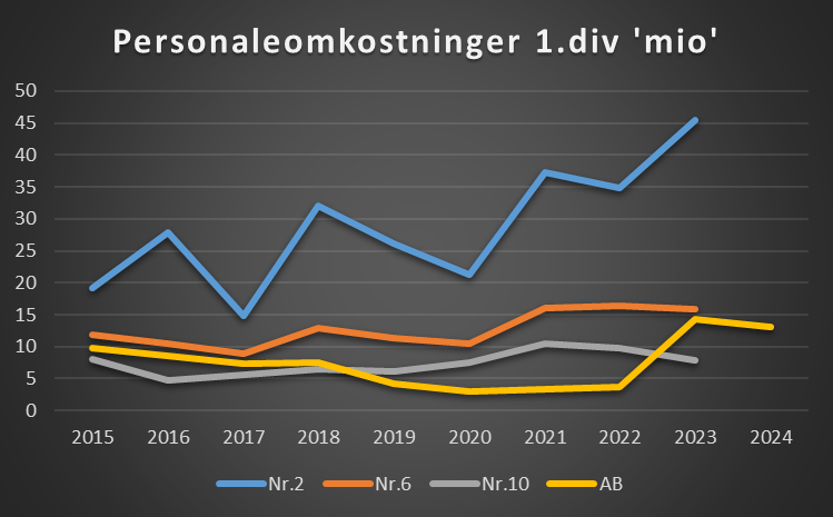 Det kunne være sjovt ikke bare at tage personaleomkostninger med i sammenligningen med de andre klubber, men også vurdere om klubbernes økonomi fortsat kan bære de personaleomkostninger, som er fundet i de nyeste regnskaber for de respektive klubber. Min umiddelbare vurdering er, at det bliver svært for Vendsyssel og Fremad Amager at opretholde de lønniveauer.