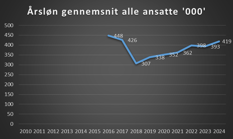 Hvad tjener den enkelte i klubben, der er nok stor forskel i forhold til om du er træner, topspiller eller rookie, men dette er årsløn i gennemsnit for alle ansatte. Data før 2016 er ikke valide da ikke alle oplyser antal ansatte i deres regnskaber