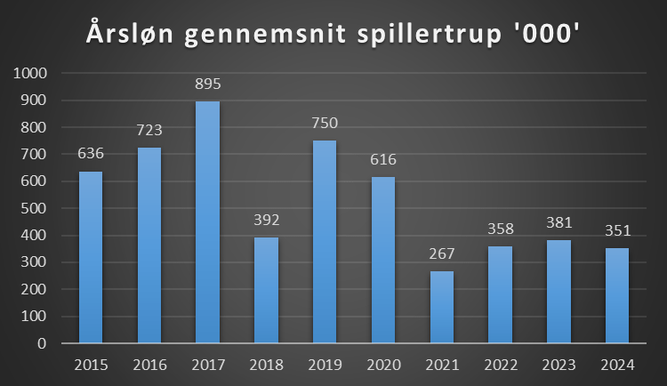 Dette er lønsum spillertrup + afskrivninger spillertrup. Lønsummen for spillertrup er ikke oplyst og er derfor et estimat baseret på de oplysninger der er i regnskab i forhold til antal kontraktansatte mm.