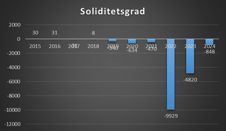 En soliditetsgrad på 0 er også sjældent godt, da klubben har finansieret alle sine aktiver med fremmed kapital. Det gør gør klubben meget skrøbelig overfor økonomisk modgang, da der ikke skal meget til, før de ikke kan betale sine økonomiske forpligtelser.