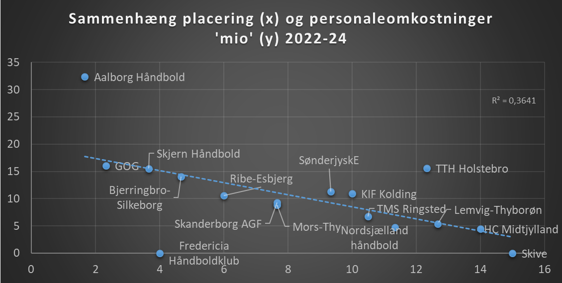 Ses der på sammenhængen de seneste tre sæsoner 2022-24 ser det således ud hvor sammenhængen er 33%.