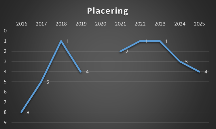 Ses der på resultaterne fra 2020-2024, så er sammenhængen mellem gennemsnitlige placering og gennemsnitlige personaleomkostninger på 68%.