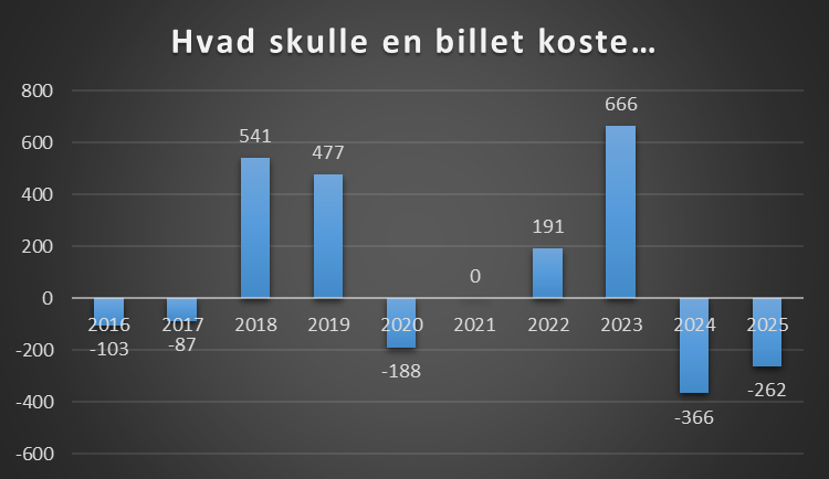 Skulle fans have dækket underskuddet via kampene i Superligaen, skulle alle billetter have været 266kr dyrere!