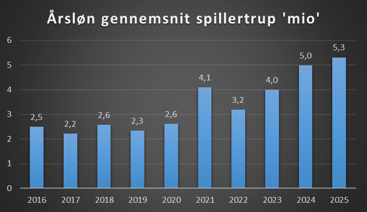 Dette er lønsum spillertrup + afskrivninger spillertrup. Lønsummen for spillertrup er ikke oplyst og er derfor et estimat baseret på de oplysninger der er i regnskab i forhold til antal kontraktansatte mm.