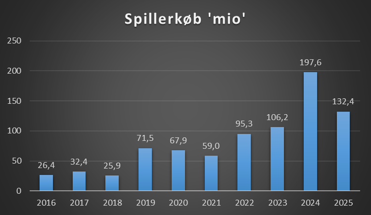 De seneste tre år har FC Midtjylland foretaget store investeringer i spillertruppen og brugt over 100 mio. kr. i hvert transfervindue. Dog er beløbet reduceret med 60 mio. kr. det seneste år, hvilket kan pege på en lidt mere tilbageholdende tilgang. Klubben har samtidig meldt ud, at man bevidst har sagt nej til flere spillerbud for at fastholde en stærk trup. Her ligger en balance mellem kortsigtet økonomi og langsigtet sportslig succes – en udfordring, alle eliteklubber står med.