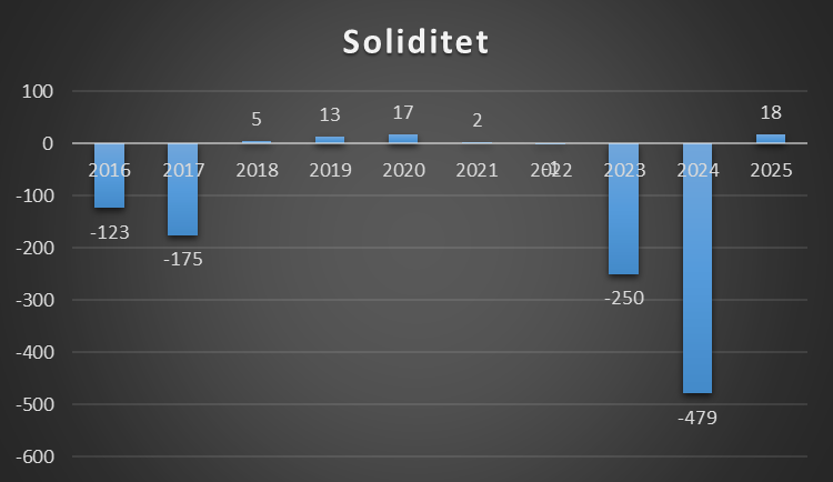 En soliditetsgrad på 0 er også sjældent godt, da klubben har finansieret alle sine aktiver med fremmed kapital. Det gør gør klubben meget skrøbelig overfor økonomisk modgang, da der ikke skal meget til, før de ikke kan betale sine økonomiske forpligtelser.