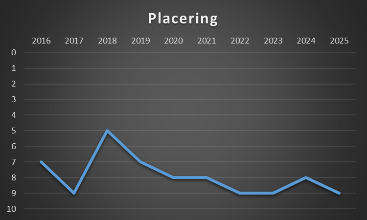 Ses der på resultaterne fra 2020-2024, så er sammenhængen mellem gennemsnitlige placering og gennemsnitlige personaleomkostninger på 68%.