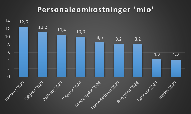 Herning oplyser ikke personaleomkostninger i deres regnskab, derfor er det et estimat.