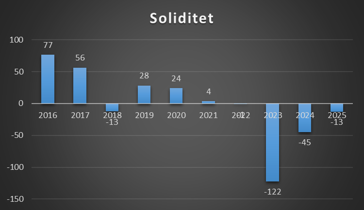 En soliditetsgrad på 0 er også sjældent godt, da klubben har finansieret alle sine aktiver med fremmed kapital. Det gør gør klubben meget skrøbelig overfor økonomisk modgang, da der ikke skal meget til, før de ikke kan betale sine økonomiske forpligtelser.