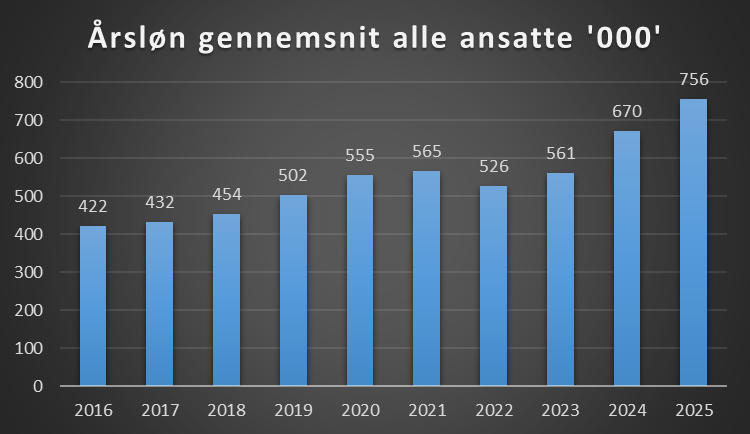 Hvad tjener man i gennemsnit, og dette er for alle ansatte i klubben