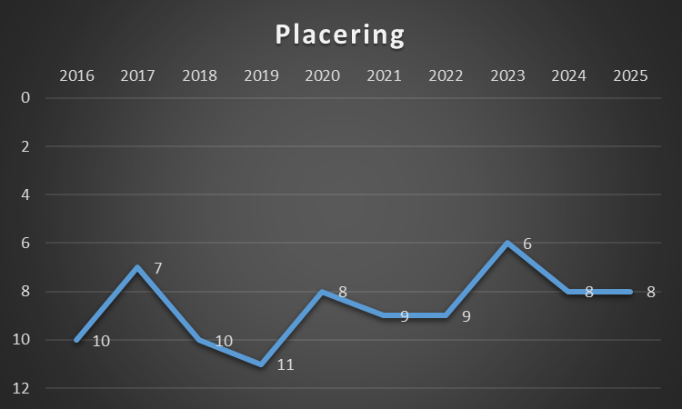 I snit er klubben de sidste ti sæsoner blevet 8,6, men har 4 af de sidste 6 sæsoner været i top 8 og dermed slutspillet.