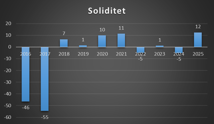 En soliditetsgrad på 0 er også sjældent godt, da klubben har finansieret alle sine aktiver med fremmed kapital. Det gør gør klubben meget skrøbelig overfor økonomisk modgang, da der ikke skal meget til, før de ikke kan betale sine økonomiske forpligtelser.