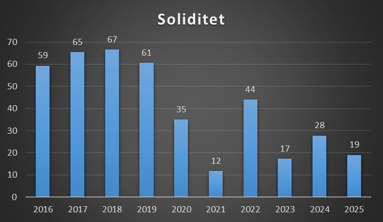 En soliditetsgrad på 0 er også sjældent godt, da klubben har finansieret alle sine aktiver med fremmed kapital. Det gør gør klubben meget skrøbelig overfor økonomisk modgang, da der ikke skal meget til, før de ikke kan betale sine økonomiske forpligtelser.