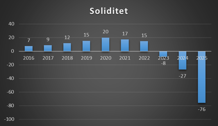 En soliditetsgrad på 0 er også sjældent godt, da klubben har finansieret alle sine aktiver med fremmed kapital. Det gør gør klubben meget skrøbelig overfor økonomisk modgang, da der ikke skal meget til, før de ikke kan betale sine økonomiske forpligtelser.