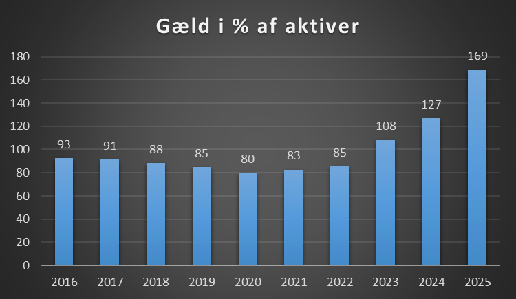 Dette er et interessant område, er gælden større end aktiverne i klubben, er det ikke positivt, så jo højere over 100, jo mere bekymrende.