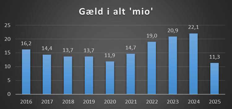 Den markante nedgang i gælden skyldes at den ansvarlige lånekapital er væk og posten periodeafgrænsningsposter er gået fra 14 mio til 6,4 mio