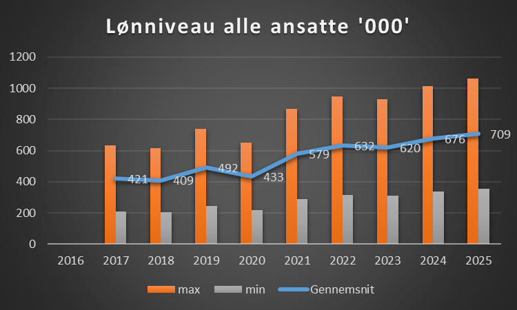 Hvad tjener man i gennemsnit, og dette er for alle ansatte i klubben. 2016 er ikke medtaget. Det er interessant at lønnen er hævet gevaldigt.