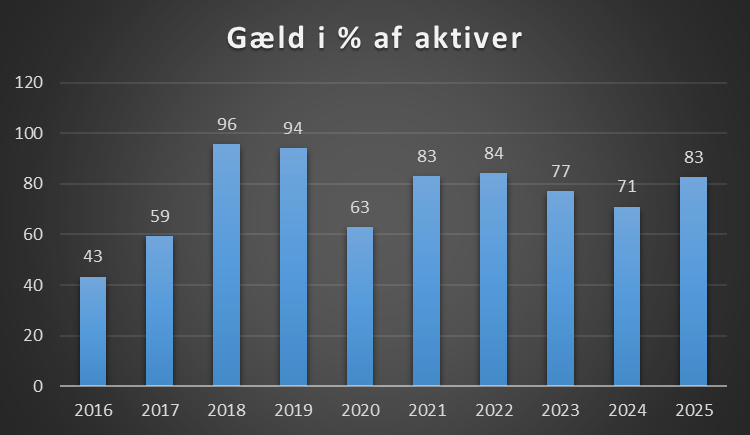 Dette er et interessant område, er gælden større end aktiverne i klubben, er det ikke positivt, så jo højere over 100, jo mere bekymrende.
