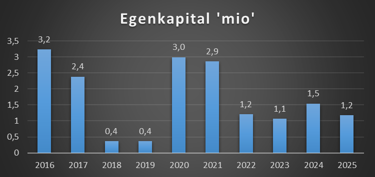 På trods af underskuddet har Team Esbjerg fundet en løsning gennem nytegning af egenkapital, hvilket har tilført 3 mio. kr. i regnskabsåret. Den samlede egenkapital pr. 30. juni 2025 udgør nu 1,2 mio. kr., hvilket er en nedgang fra de 1,5 mio. kr. året forinden. Soliditetsgraden viser, at klubben arbejder med en ganske snæver margin – noget der gør klubben afhængig af ejerkredsens villighed til at understøtte økonomien, hvis der igen opstår uforudsete hændelser.