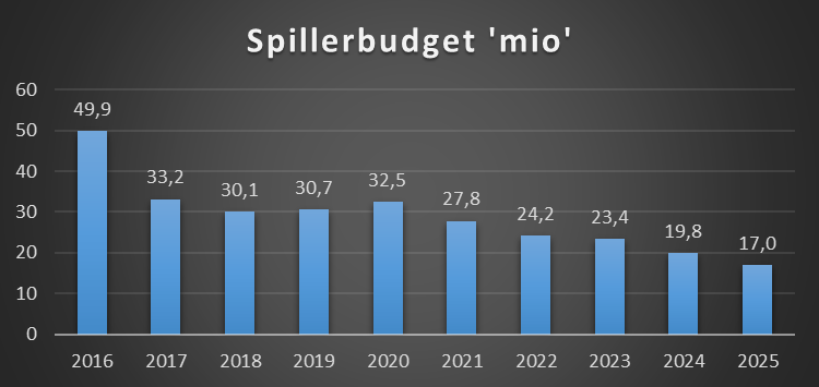 Dette er lønsum spillertrup + afskrivninger spillertrup. Lønsummen for spillertrup er ikke oplyst og er derfor et estimat baseret på de oplysninger der er i regnskab i forhold til antal kontraktansatte mm.