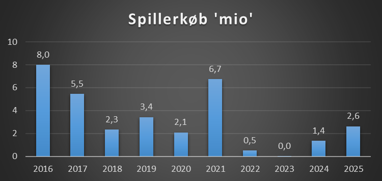 På udgiftssiden er millionlønningerne i spillertruppen væk. Der er stadig spillere med gode lønninger, men gennemsnitslønnen ligger nu under 500.000 kr. Det er et helt andet lønspor end tidligere – og mere i tråd med den række, Esbjerg aktuelt befinder sig i. Den økonomiske karakterbog går samlet set i den rigtige retning, men der er stadig brug for fornuft, tålmodighed og konsolidering, før der kan skrues for alvor op for ambitionerne.