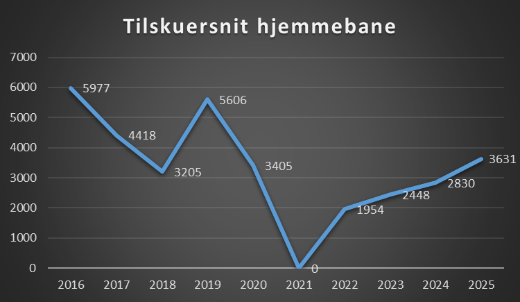 Tallet for 2021 er ikke medtaget (Covid19 sæsonen) og står som 0.
