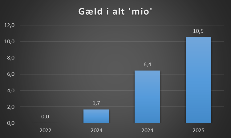Den største gældspost er på 9,6 mio som er til moderselskabet