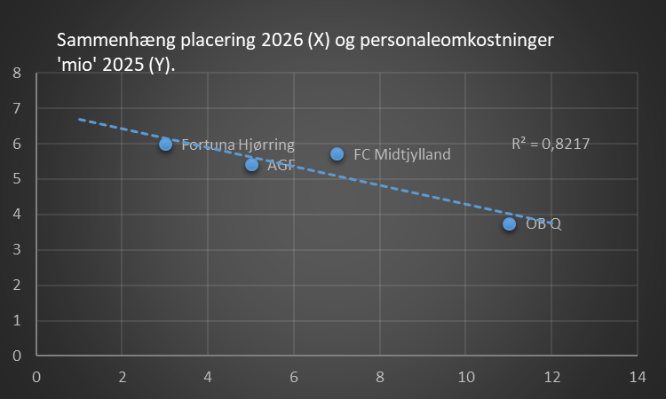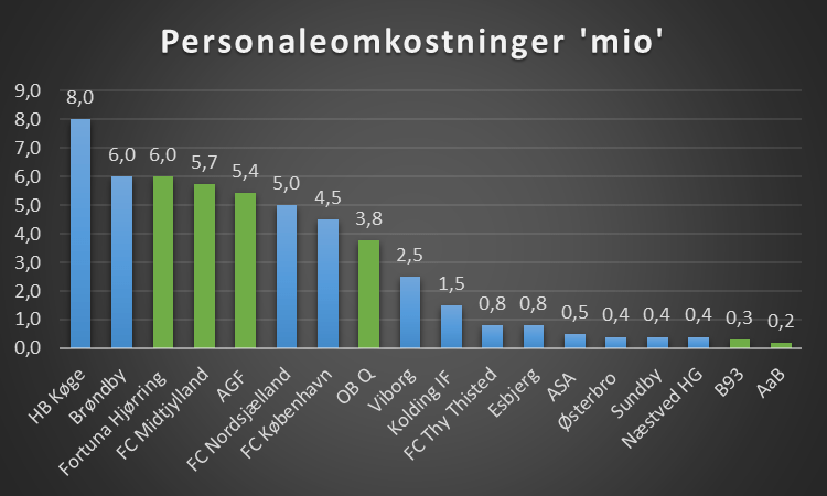 Ses der på stillingen i denne sæson og holder det op med klubbernes personaleomkostninger fra seneste regnskab, så er sammenhængen 82%. Men da kun 4 klubber oplyser dette af 12, er det ikke et validt tal.
